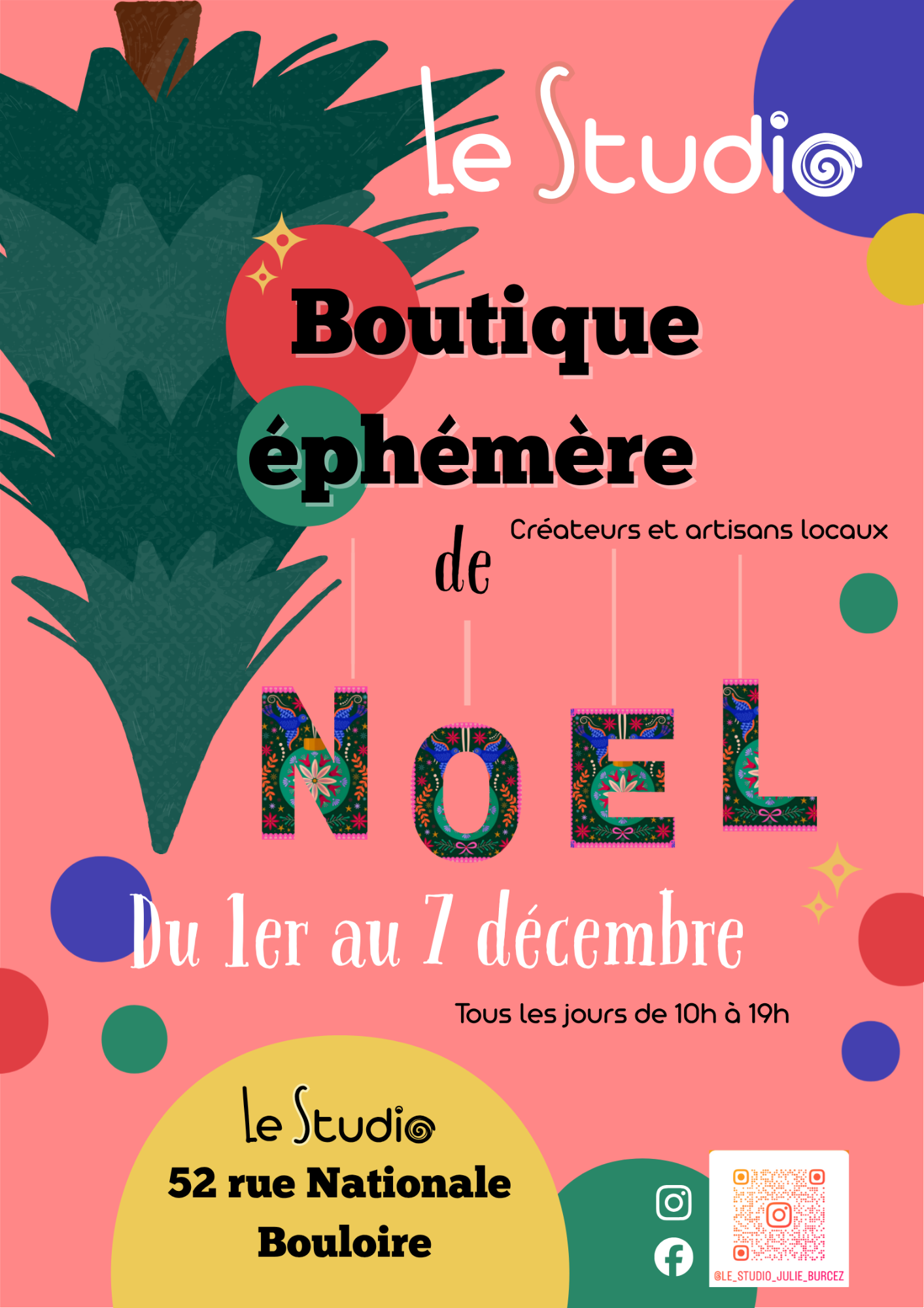 - Du 1er au 7 décembre : Boutique éphémère de Noël au Studio à Bouloire (72)